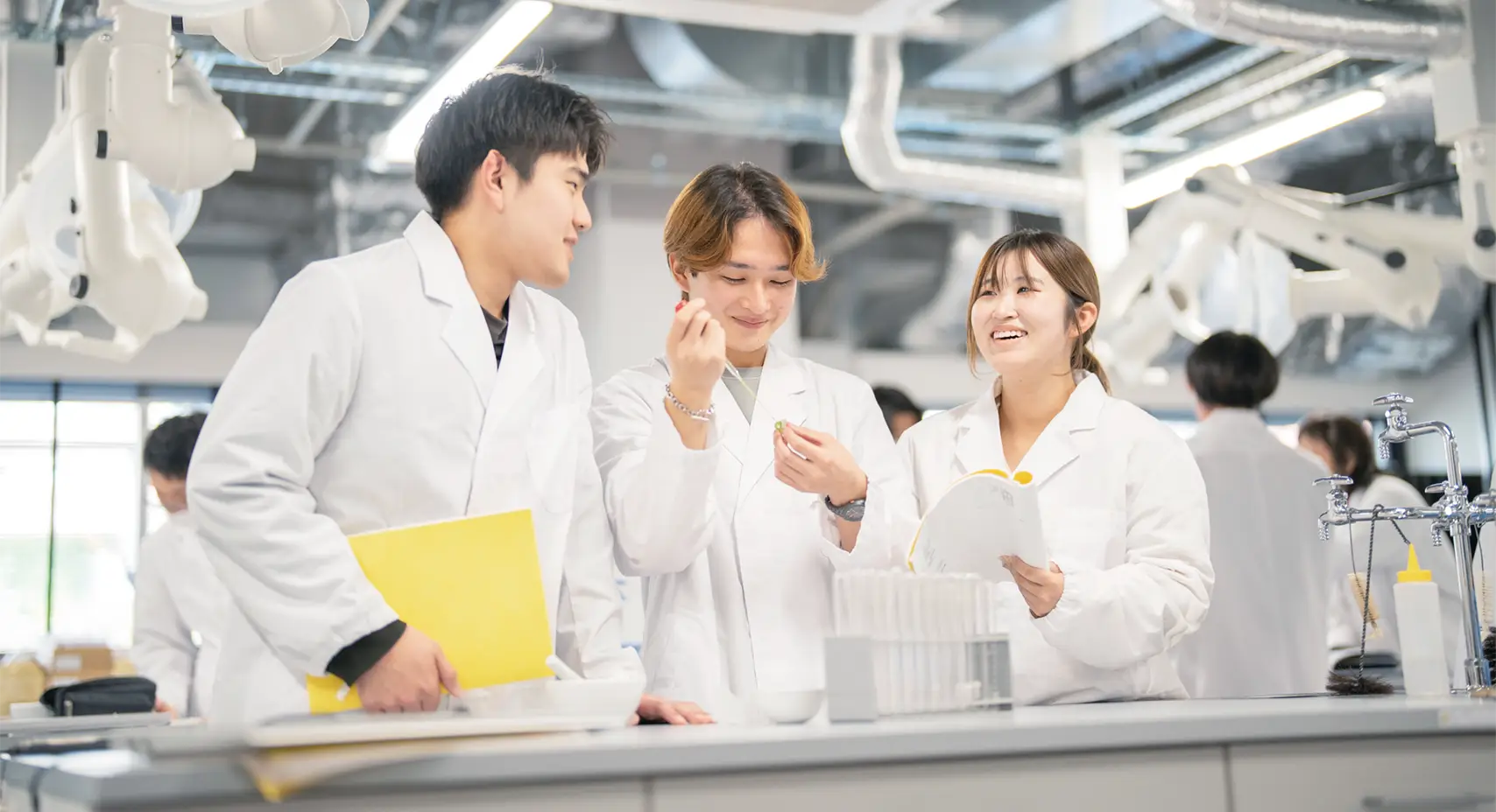 工学部共通となる専門基礎科目、各課程分野の専門科目という基盤となる学びはこれまで以上に充実したものに。