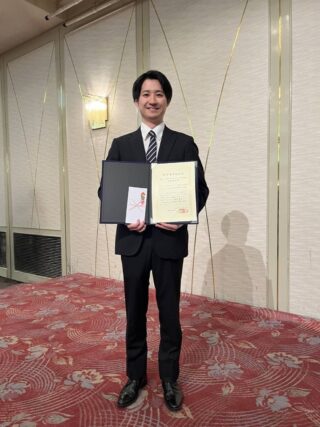 10月29日(水)~31日(金)に、ウインクあいち(愛知県産業労働センター)で公益社団法人 腐食防食学会主催 「第72回材料と環境討論会」が開催され、コンペティションセッションにおいて工学研究科 環境応用化学専攻 修士2年 高橋 颯真 さん(電気化学研究室/指導教員:加藤 善大 教授)が若手講演奨励賞を受賞しました。