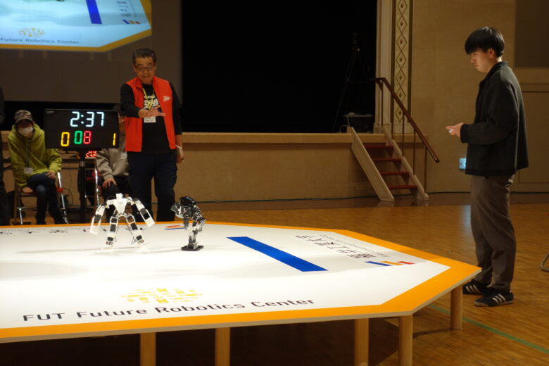 本課程より学生プレゼンテーションには4年 高田柊君(下位研究室)、eスポーツには4年 武野光君(小林研究室)、3年 石川活也君(伊藤研究室)、ROBO-ONEには1年 滝沢海翔君、平井秀弥君が参加しました。