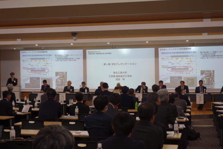 学生プレゼンテーションは高田君が東北工業大学代表として登壇し「未来につながる半導体技術を創る-東北の活性化に貢献する半導体プロセス技術の研究—」というテーマでプレゼンテーションを行いました。またeスポーツ部門では見事に3位入賞を果たしました!おめでとうございます!