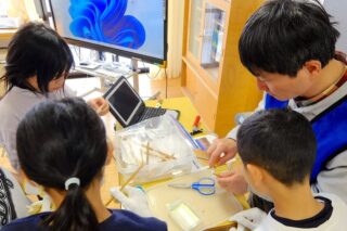 2025年11月21日、山田一裕(環境生態工学)研究室では、北上川下流域のヨシ原保全・再生に関わる研究・活動を実施しています。その一貫で、石巻市立北上小学校でヨシ原学習・保全活動の支援をしています。今回は、12月に5年生が実施するヨシ刈り体験の事前学習を教室で実施しました。スライドでの学習のあと、ヨシ笛づくりに挑戦してもらいました。