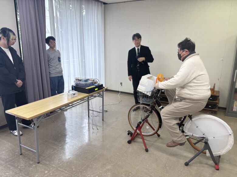自転車で自家発電した電気エネルギーの蓄電および有効活用のデモンストレーション