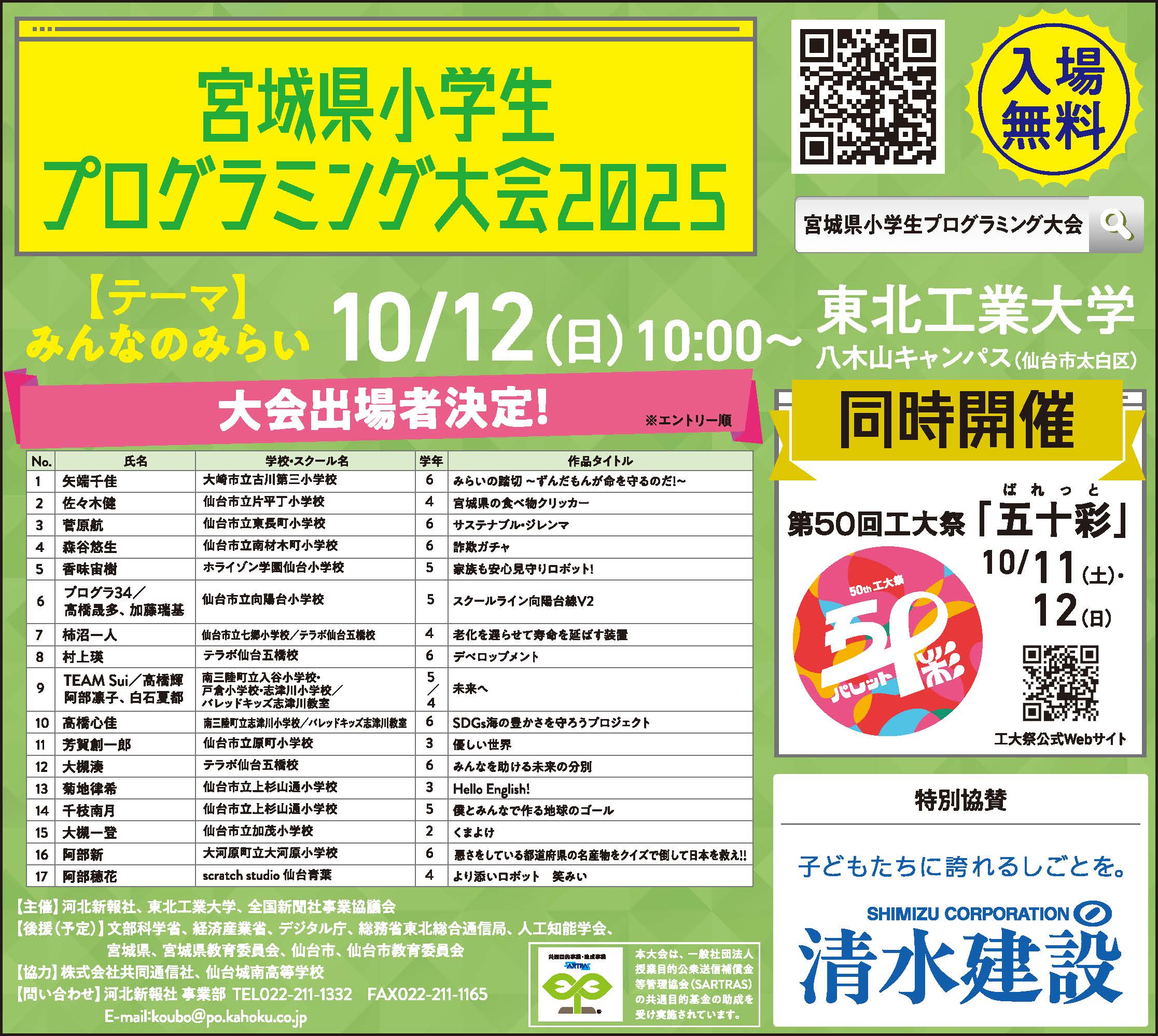 「宮城県小学生プログラミング大会2025」を下記のとおり開催します。