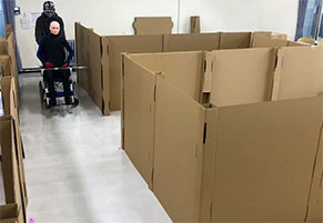 ゼミでは学生たちによく、自分たちの身近なことで少しでも関心をもてるものがあれば、それを大事にして研究テーマにしてみなさいと指導しています。日常の中で見過ごしがちな事象の中に、違和感や不便さを感じるならば、それを追求するべきです。つまらない、恥ずかしいと思うことはありません。そのような身近な違和感こそが、何か重要な問題につながるかもしれません。ゼミでは盛んなディスカッションを行い、研究テーマの検討を行なっています。例えば、大学のある八木山に電柱やマンホールがいくつあるのか調査に取り組んだことがありますが、これは、大震災などで身近な避難場所を知るための手掛かりになります。また、災害時を想定して自動運転車いすで建物内を避難する模擬実験も行い、介護ロボットに乗車していると通過しづらいドアや対向者とすれ違うのに困難な幅の通路があることを示すことができました。