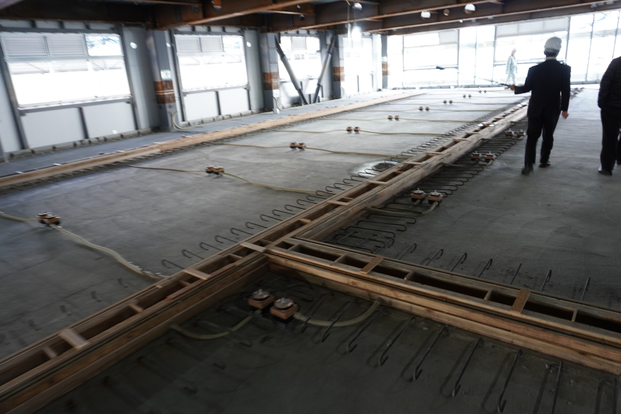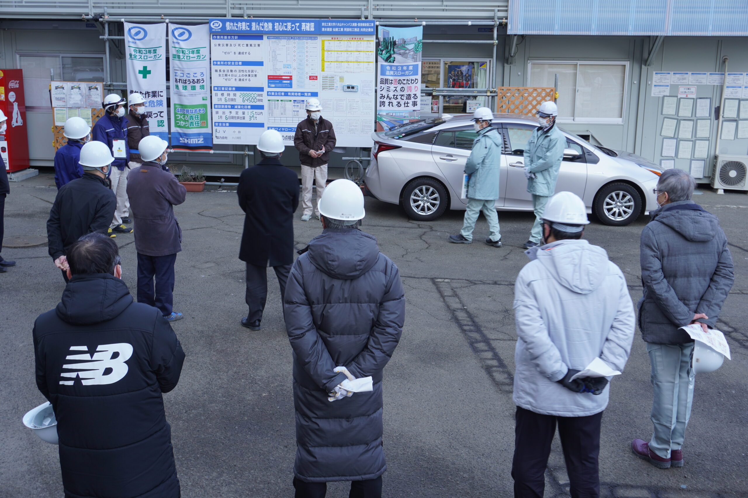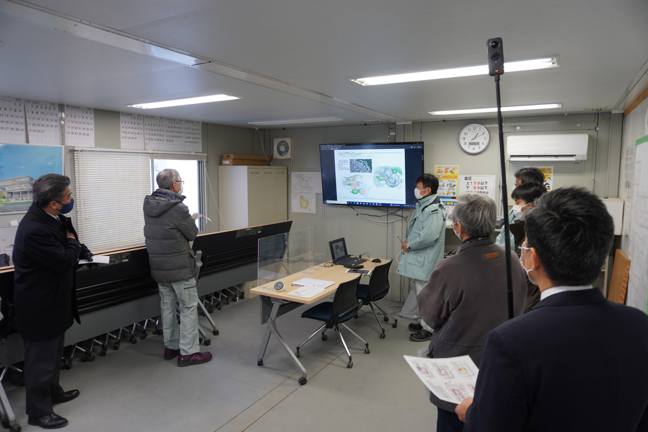 2022.01.27 1月27日(木)、新築工事現場見学会が行われ、渡邉学長をはじめとする本学関係者16名が参加しました。 はじめに、設計・監理の前見 氏より工事概要の説明、現場所長の結城 氏より進捗状況について説明がありました。現在、9月の竣工に向けて順調に工事が進んでいるとのことでした。 その後、工事現場に案内され、各フロアを巡回しながら説明を受けました。参加者は配付された図面を片手に、建設中の建物を肌で感じながら興味深く説明に耳を傾けていました。