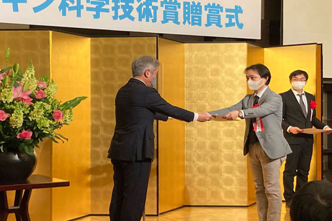 室山 真徳 准教授含めた各受賞者に賞状が贈呈されました。