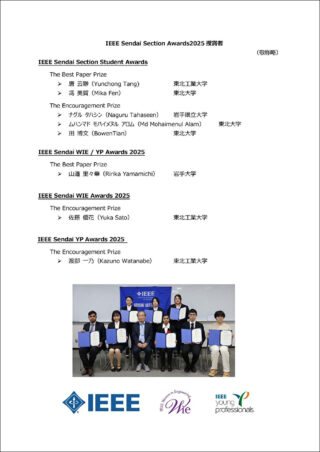 ◆情報通信工学課程Webサイト:本専攻の大学院生がIEEE Sendai SectionのBest Paper Prizeに選ばれました